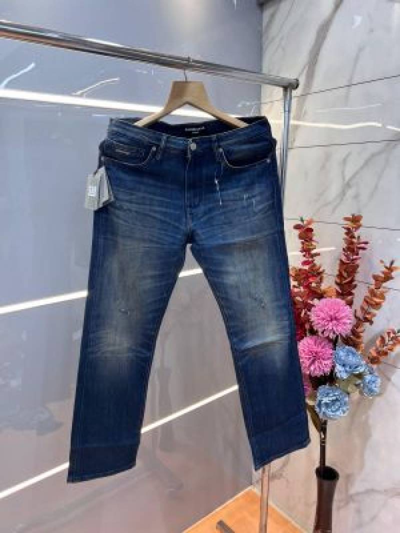 Balenciag a Blue Shade Premium Imported Stretchable Lycra Fabric Straight Fit Denim with Embroidered Logo 3074